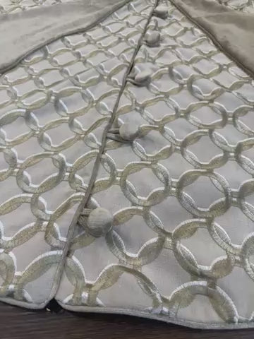 Descubra la magnificencia de nuestra falda de árbol de celosía de 183 cm, una adición impresionante a su decoración navideña. Hecha a mano con un patrón exclusivo de Marge Carson, esta opulenta obra maestra realzará su árbol con un toque de sofisticación. Disfrute de esta excepcional pieza y realce la apariencia de su árbol esta temporada navideña.